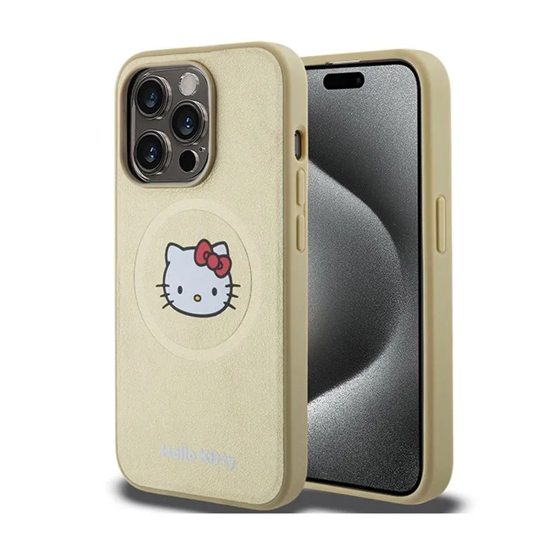 Hello Kitty Leather Kitty Head MagSafe - Etui iPhone 15 Pro (złoty)