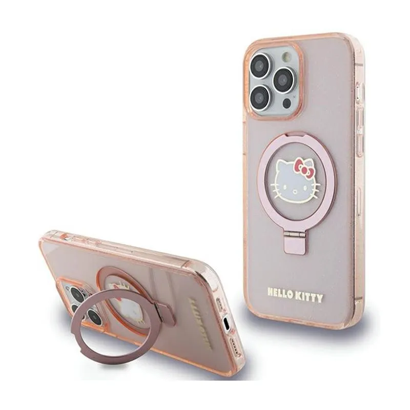 Hello Kitty Ring Stand Glitter Electrop Logo MagSafe - Etui iPhone 15 Pro Max (różowy)